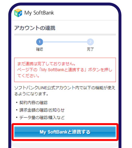 STEP04 「My Softbankと連携する」をタップ 赤枠のボタンをタップしてください。