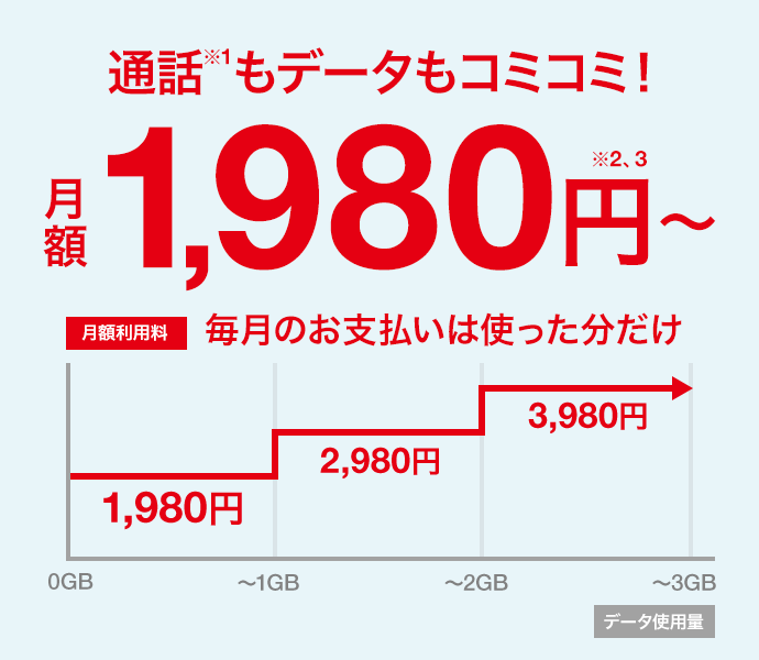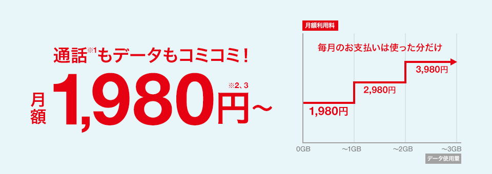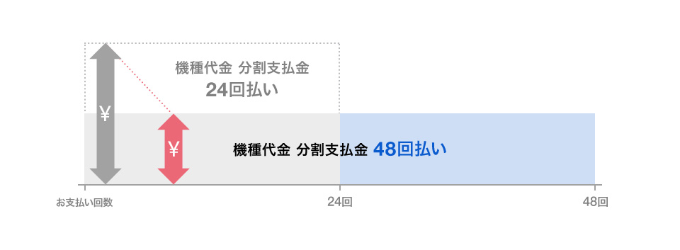 毎月のご利用データ量に応じてお支払い料金が変動する、ムダなくおトクな節約プランです。半額サポートの適用により購入端末の48回分割払いを選択できますので、毎月のお支払いの負担がさらに軽減されます。