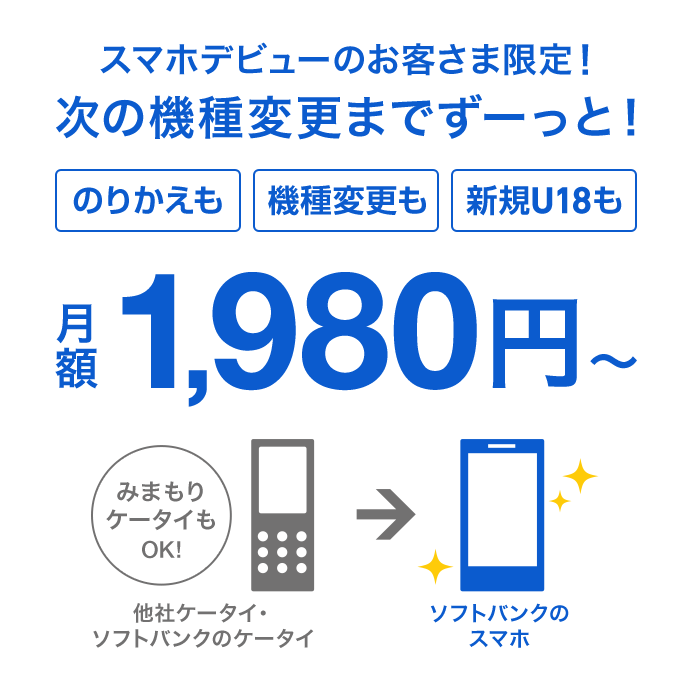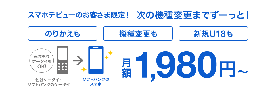 はじめてソフトバンクの iPhone、スマートフォンをご契約されるお客さまを対象に毎月の通信料金から2,420円割引するキャンペーンです。さらに、本キャンペーン限定で一部の機種について特別価格にてご購入いただけます。