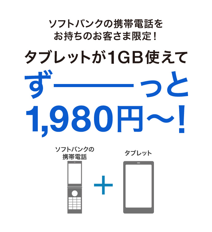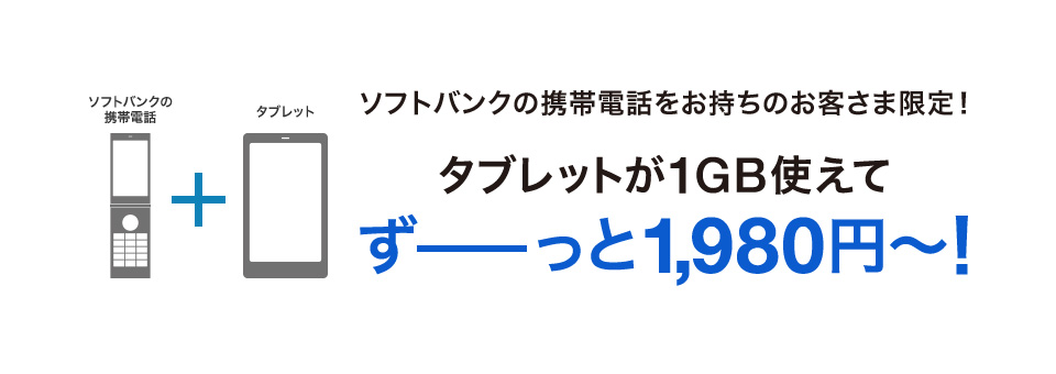 ソフトバンクの携帯電話をご利用中のお客さまが、対象のタブレットまたは iPad をご購入の場合、キャンペーン価格でご利用いただけます。
