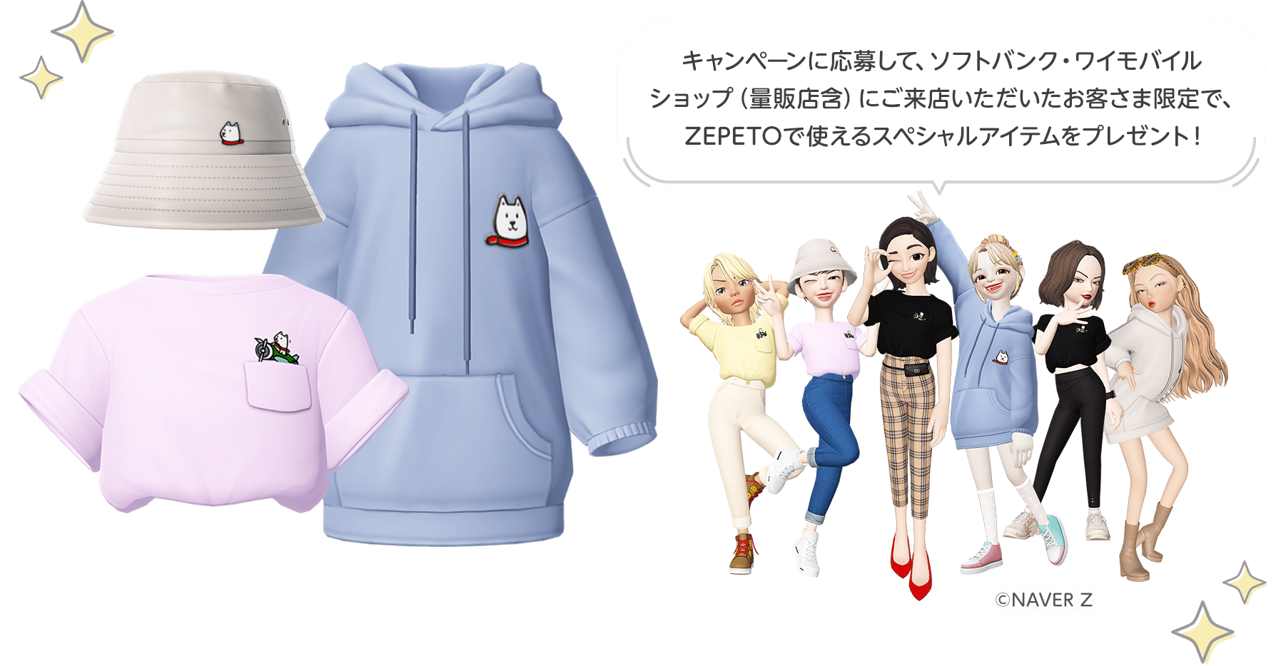 ・ 「ZEPETO」アプリにログインして、対象のソフトバンク・ワイモバイルショップ(量販店含)に来店した際に入手したクーポンコードを入力すること