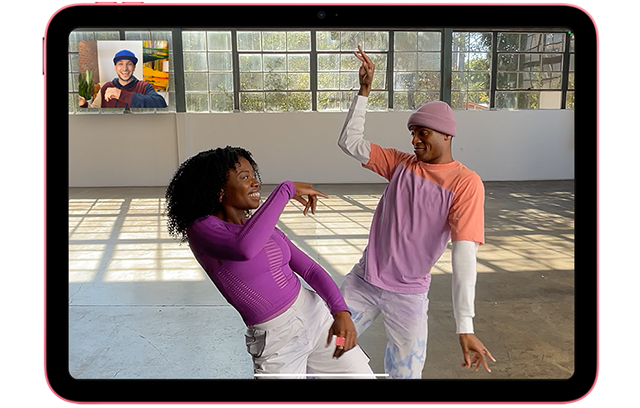 センターフレームに対応した横向きのフロントカメラで、より自然なビデオ通話を◊。Wi‑Fi 6と5Gに対応しているので、仕事仲間や大切な人といつでもつながれます◊。