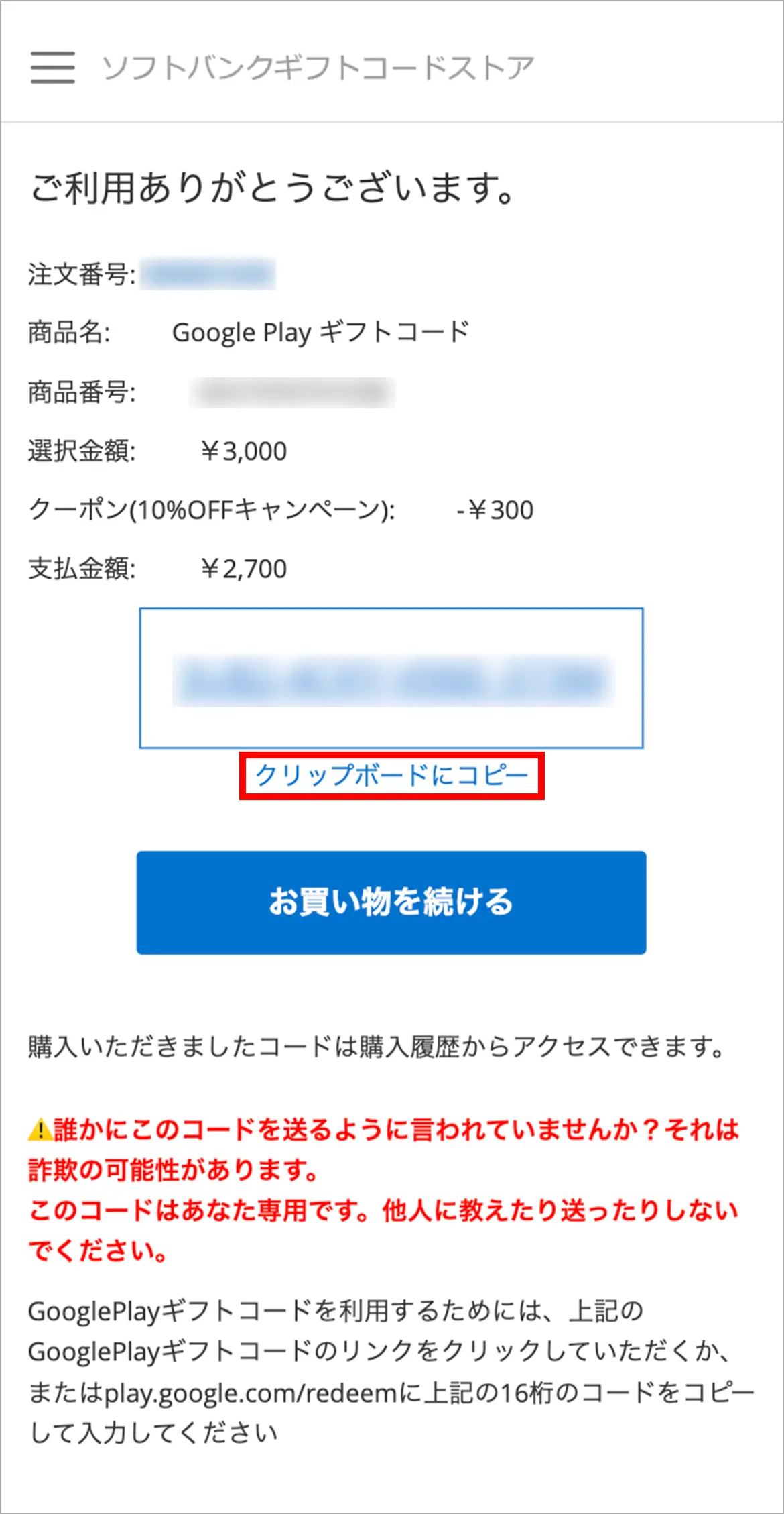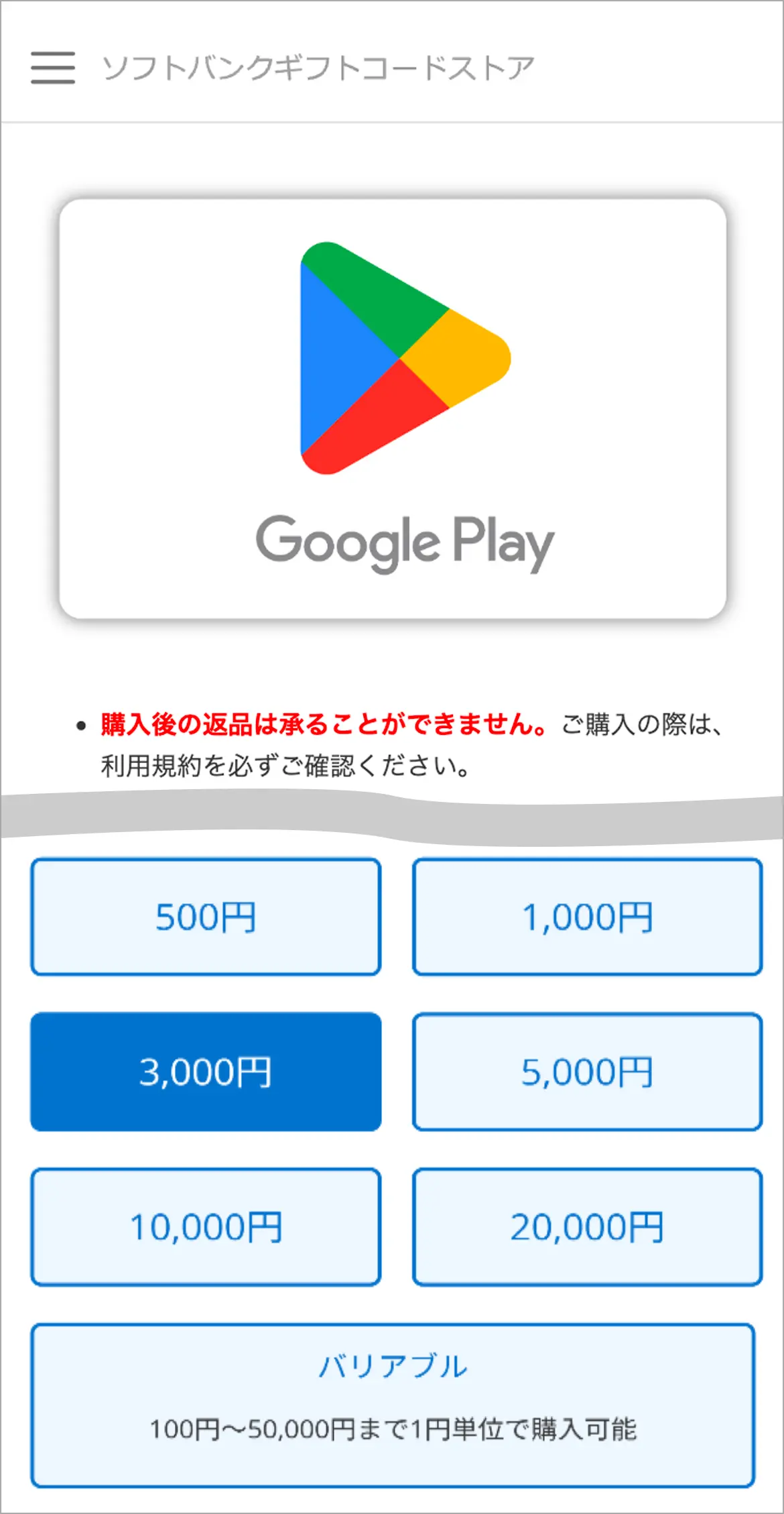 Google Play ギフトコード購入サイトへスマートフォンでアクセスしてください。