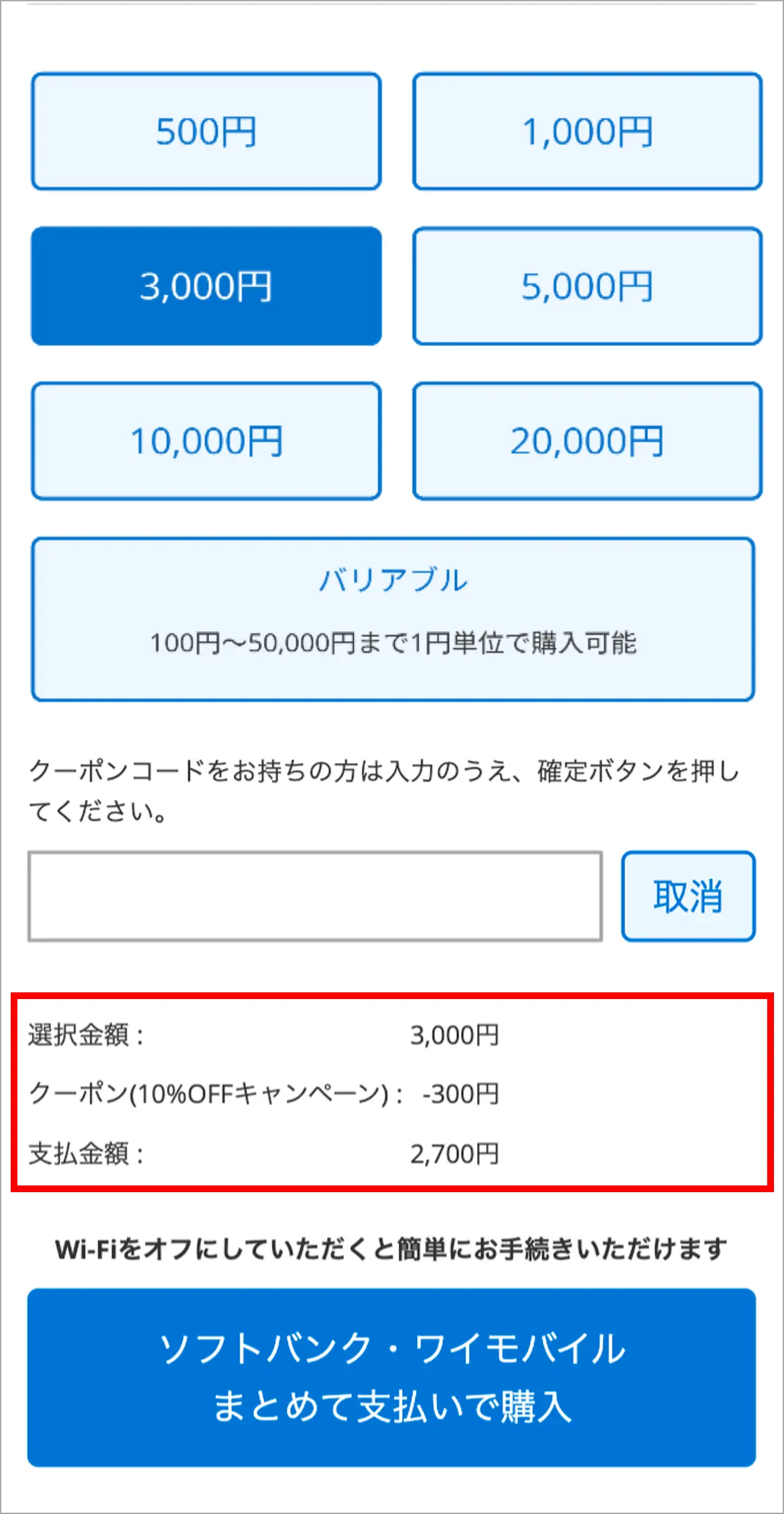 ※ ソフトバンク・ワイモバイルまとめて支払いのご利用可能額が2万円 よりも低い場合は、そちらの金額が適用となります。