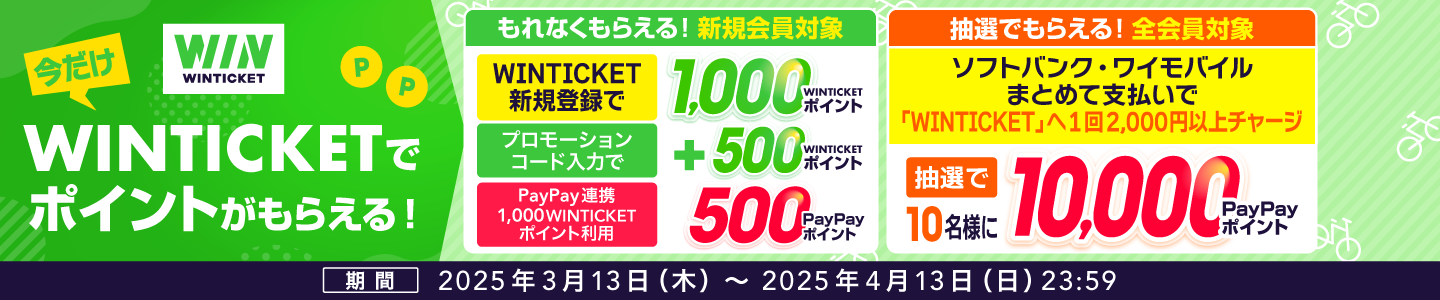 - ポイント付与時にWINTICKETアカウントとPayPayポイントの連携を解除されていた場合はポイント付与の対象外となります。