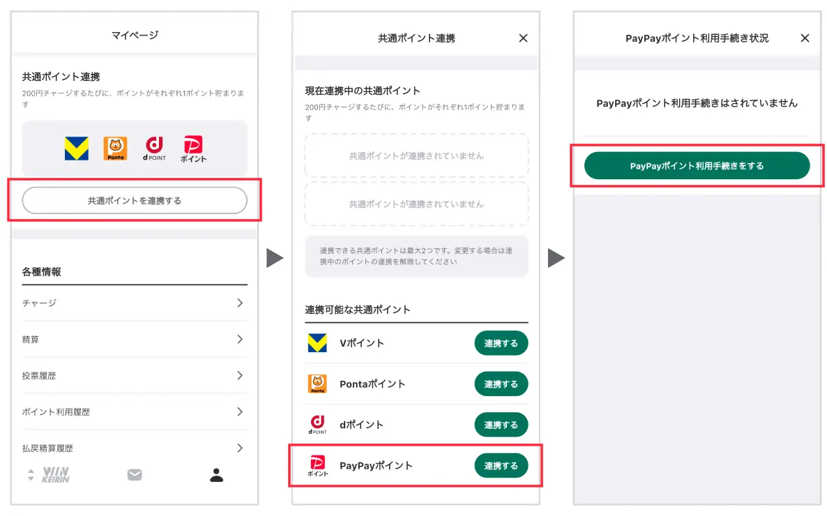 - 特典2と特典3のPayPayポイント受け取りにはWINTICKETとPayPayポイントの連携が必要です。
