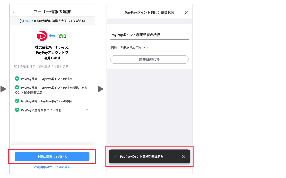 - PayPayポイントの受取にはWINTICKETアカウントとPayPayアカウントの連携が必要です。