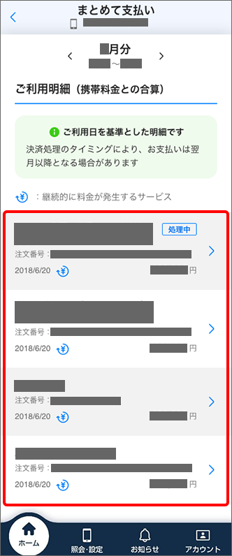 ※ ご家族と請求先をまとめている場合、ご自身のご利用分でなくても請求書などに記載されます。