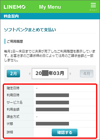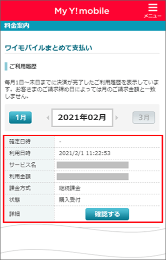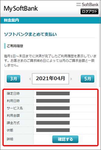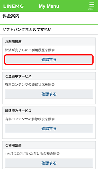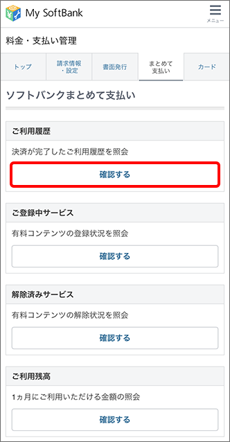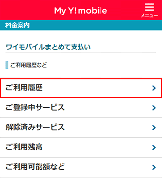 「My SoftBank」「My Y!mobile」「My Menu」でも購入金額の履歴はご確認いただけます。
