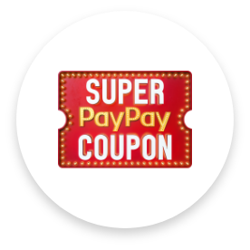 - ・「PayPayクレジット」「PayPay残高」「PayPayポイント」以外のPayPayカード、PayPayカードゴールド、PayPay残高カードなどでのお支払いは対象外。「7NOW」「スマホレジ」の支払いは対象外。タバコの購入金額はクーポン対象外。