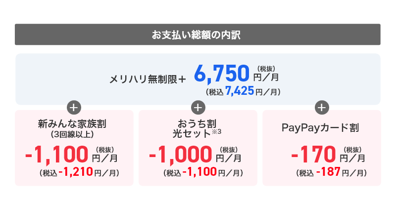 勝手に割引!ギガたっぷり使う月も使わない月も無駄がない!メリハリ無制限+ 勝手に割引!ギガたっぷり使う月も使わない月も無駄がない!メリハリ無制限+