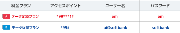 各料金プラン/各対応USIMカードごとに設定内容が異なります。