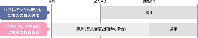 - ソフトバンクへ新たにご加入されるお客さまがお申し込みの場合、加入日から適用となります。