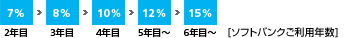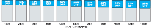 - 基本使用料割引率はソフトバンクご利用年数(新規でご契約いただいた日からの期間)を適用いたします。