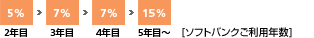 - 基本使用料割引率はソフトバンクご利用年数(新規でご契約いただいた日からの期間)を適用いたします。