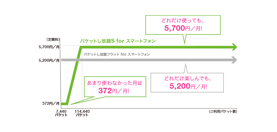 5,700円/月 パケットし放題フラット for 4G 通信速度 128kbps 2,000円~6,200 円/月 パケットし放題 for 4G 通信速度 128kbps
