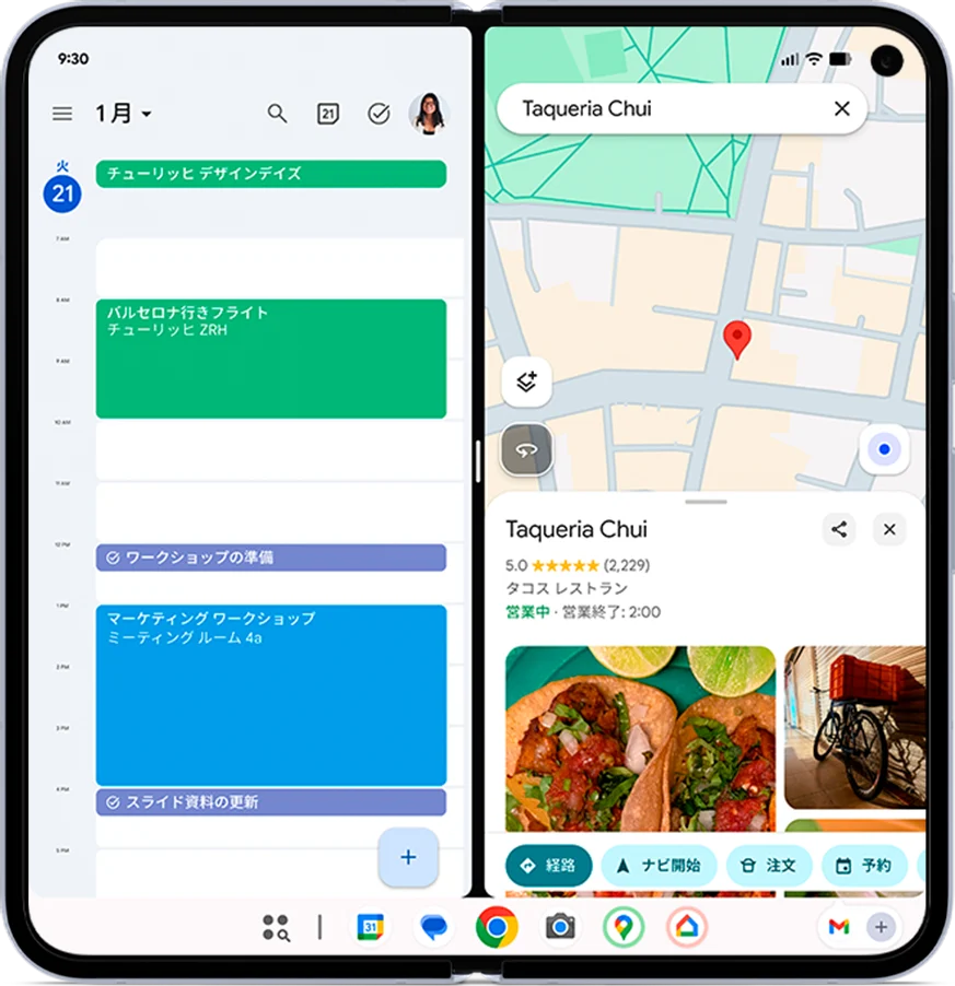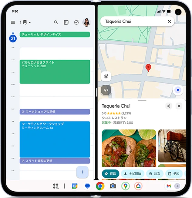 分割スクリーンを使って旅行の計画を立てたり、外出先で画像をプレゼン資料にドラッグ&ドロップしたり3、