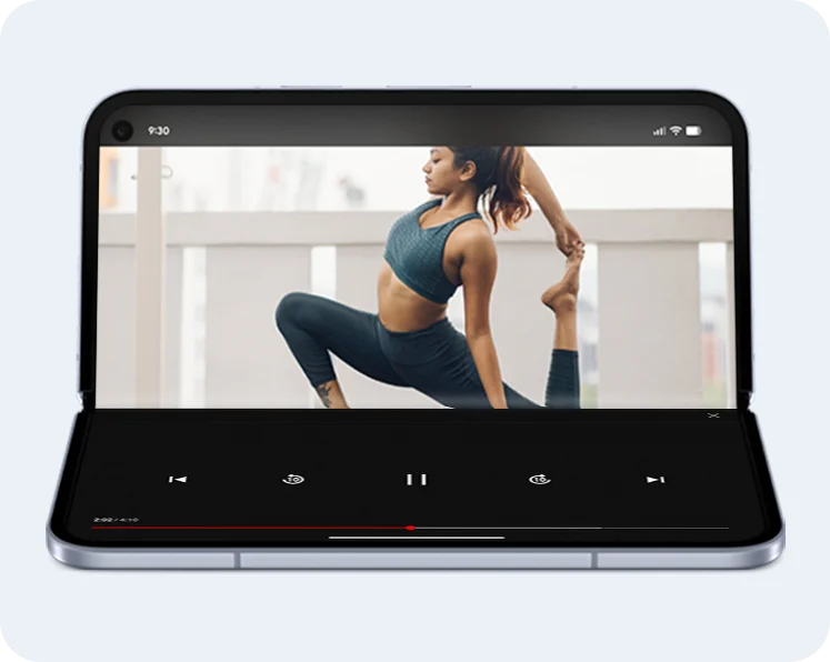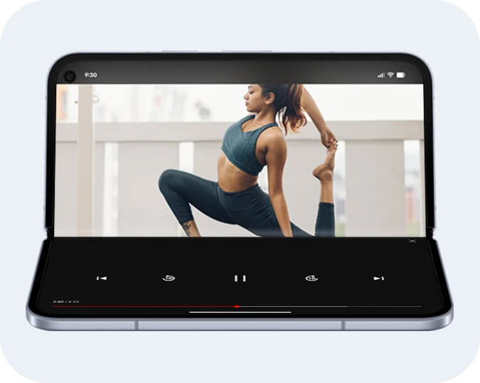 テーブルトップ モードにして安定した場所に置けば、お気に入りの動画を手軽に視聴できます。