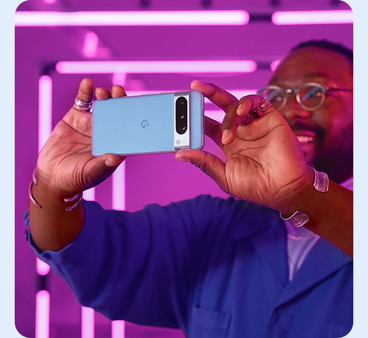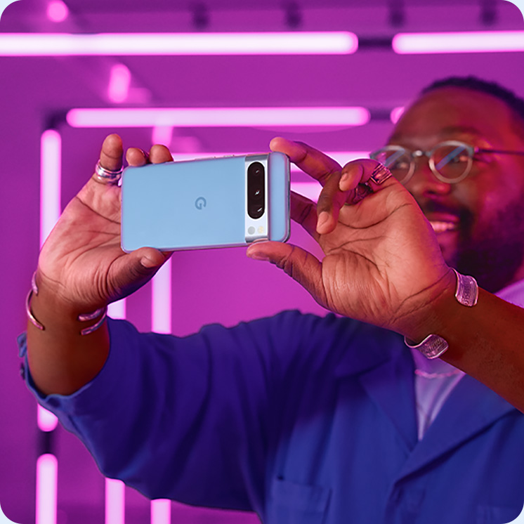 Google Pixel 8 Pro トリプル背面カメラと Google AI で、思い描いたとおりに写真と動画を撮影できます1。