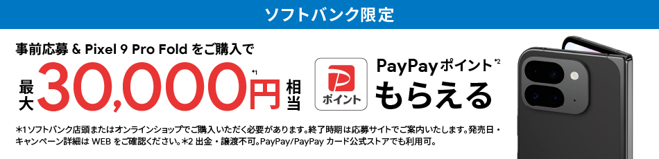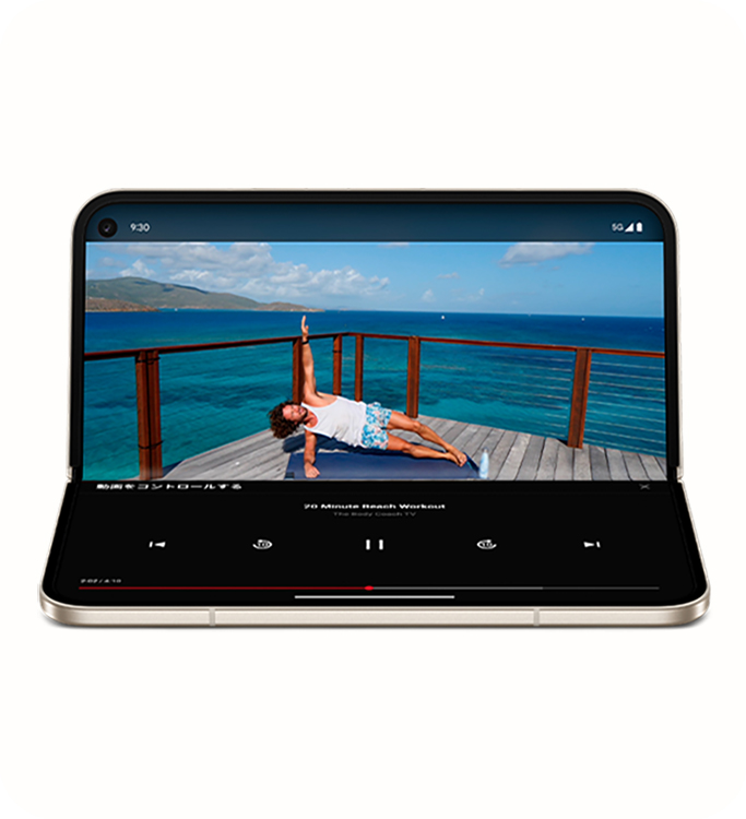 1 日本市場における他の折りたたみ式スマートフォンとの比較。インナー ディスプレイのサイズに基づきます。 2 ディスプレイは角に丸みがあります。長方形として対角線を測定したときの外側ディスプレイのサイズは 6.3 インチ、内側ディスプレイのサイズは 8 インチです。実際の表示可能領域はそれより小さくなります。サイズは構成および製造工程によって異なる場合があります。 3 デバイスは、工場出荷時点で IEC 規格 60529 の IPX8 の防水および防塵性能を満たすよう設計されていますが、完全な防水および防塵ではありません。アクセサリは防水、防塵ではありません。防水および防塵性能は永久的には持続せず、時間の経過に伴い、通常の使用による摩耗、デバイスの修理、分解、損傷によって徐々に低下または消失します。デバイスの耐落下性能は完全なものではありません。デバイスを落下させると、防水、防塵性能が失われる場合があります。落下その他の外的な衝撃による損傷は保証の対象外となります。液体による損傷の場合、保証が無効になります。詳しくは、g.co/pixel/waterをご覧ください。