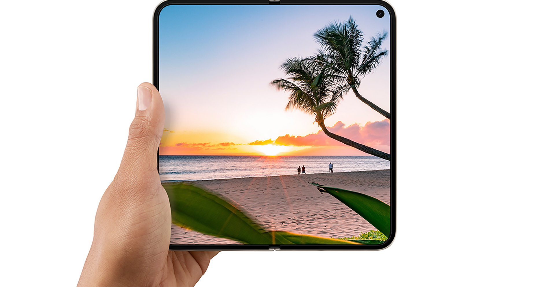 傷が付きにくいディスプレイを採用した折りたたみ式スマートフォン。