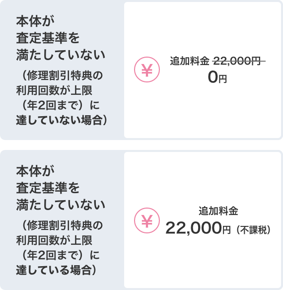 - 査定基準を満たさない場合の追加料金はこちらをご確認ください。