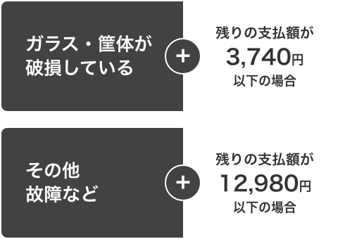 回収した機種にかかる追加料金が、残りの支払い額*と同じまたは高い