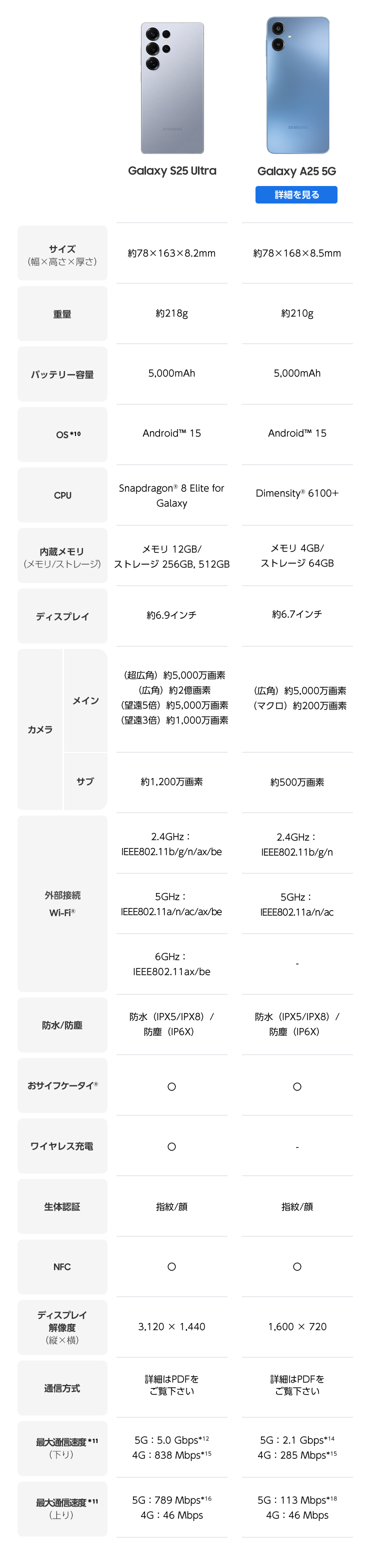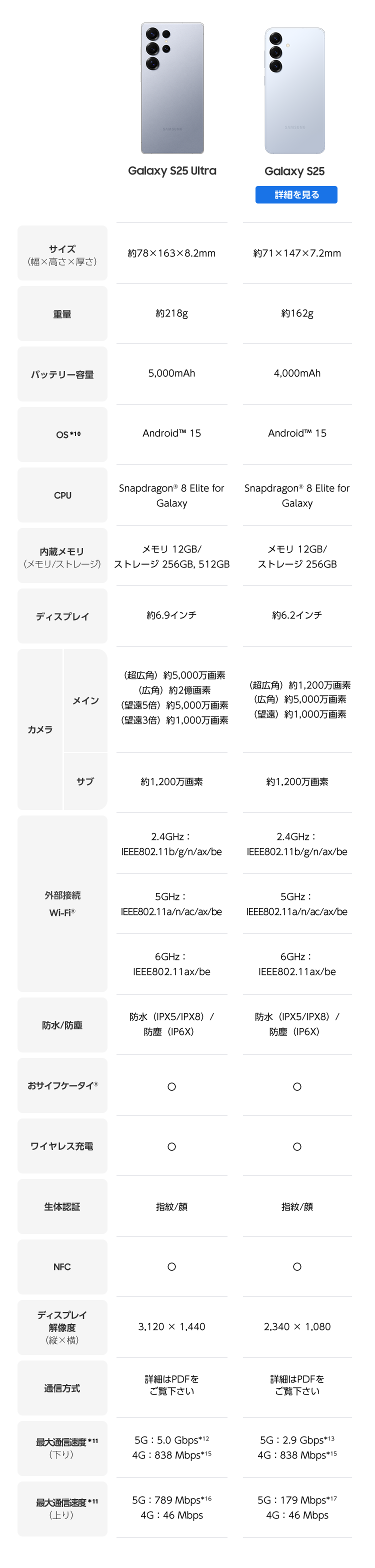 | カメラ | メイン | (超広角)約5,000万画素 (広角)約2億画素 (望遠5倍)約5,000万画素 (望遠3倍)約1,000万画素 |