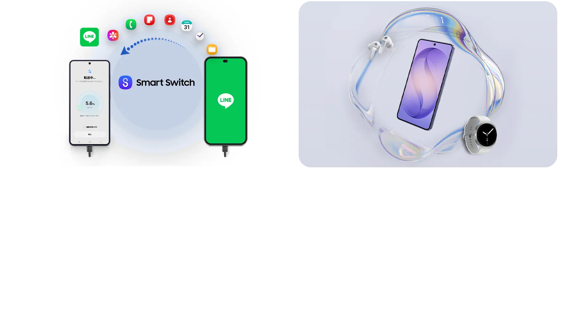 詳細はSamsung公式Webサイト(https://www.samsung.com/jp/apps/smart-switch/)をご確認ください。 - *10Samsung Galaxyデバイスはそれぞれ別売りです。