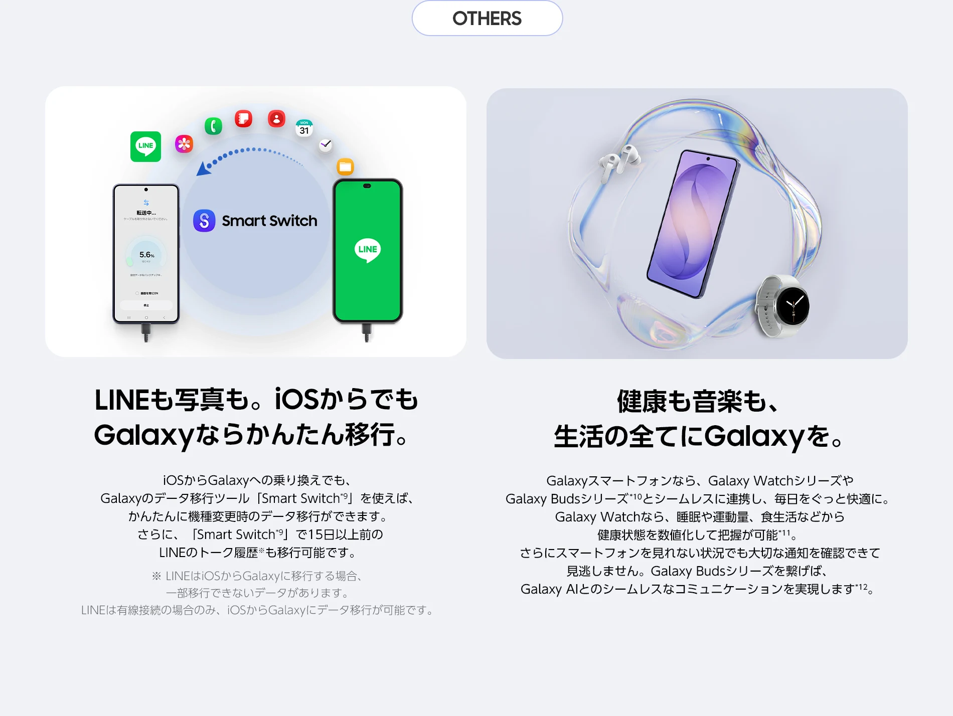 詳細はSamsung公式Webサイト(https://www.samsung.com/jp/apps/smart-switch/)をご確認ください。