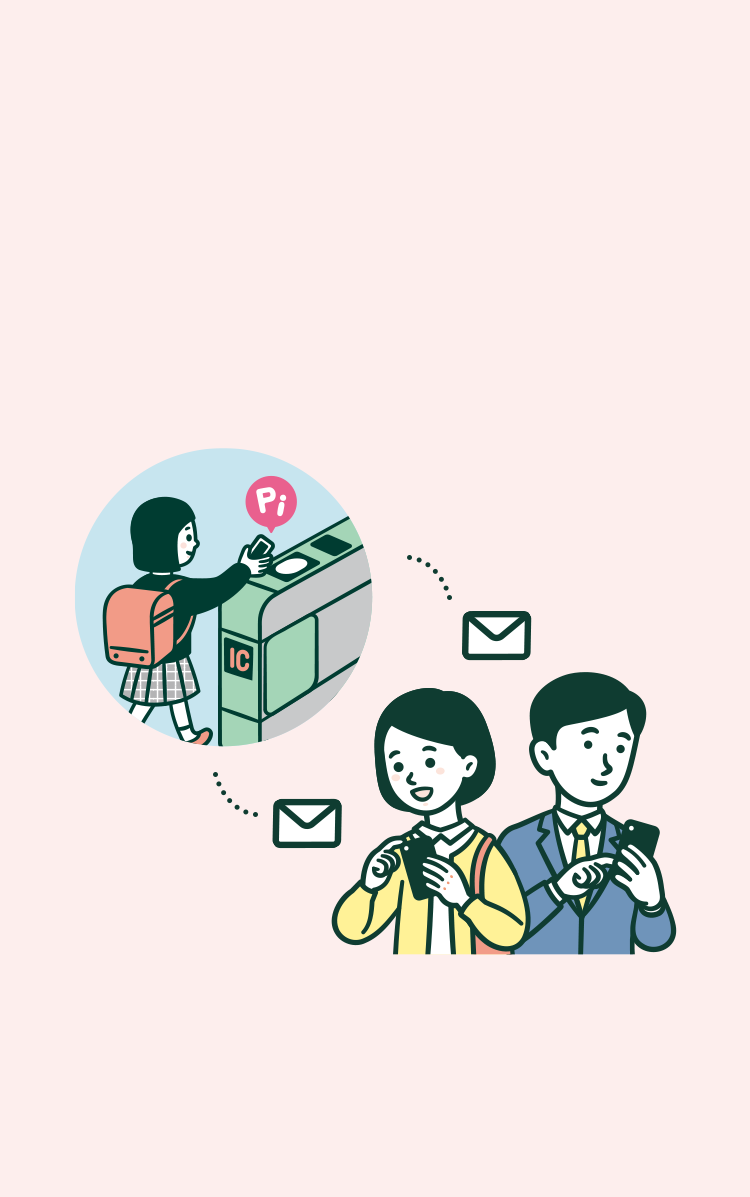 改札を通過した際などに、お子さまのアプリケーションから事前登録した連絡先へ自動でメールを送付します。
