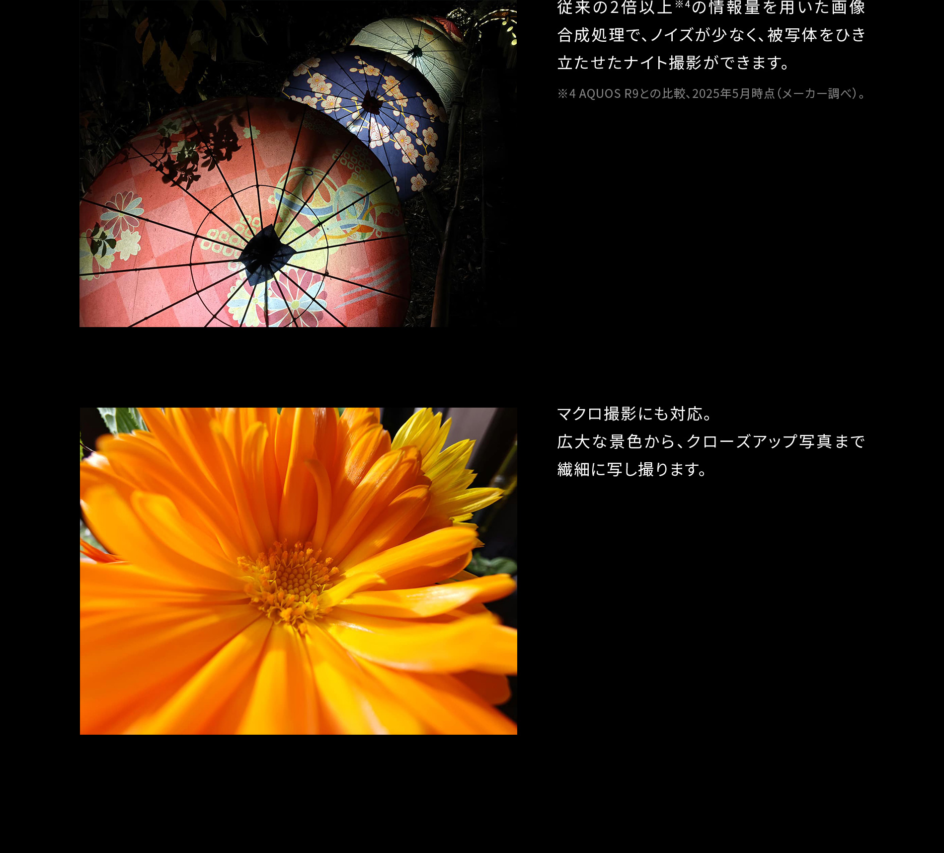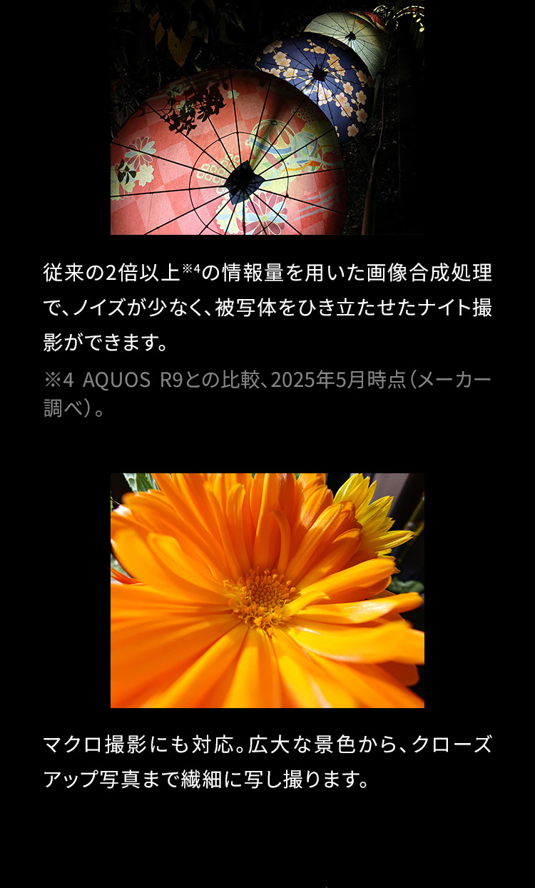 ※4 AQUOS R9との比較、2025年5月時点(メーカー調べ)。