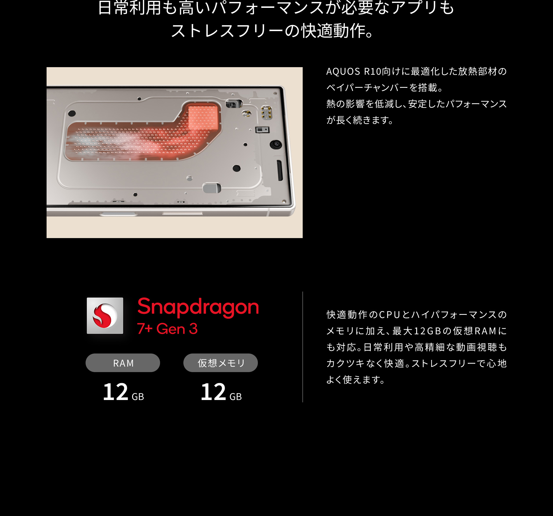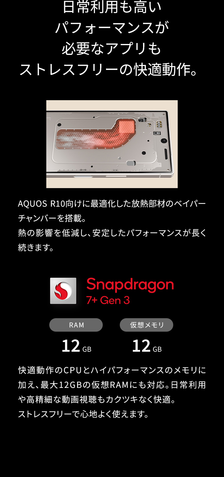 AQUOS R10向けに最適化した放熱部材のベイパーチャンバーを搭載。