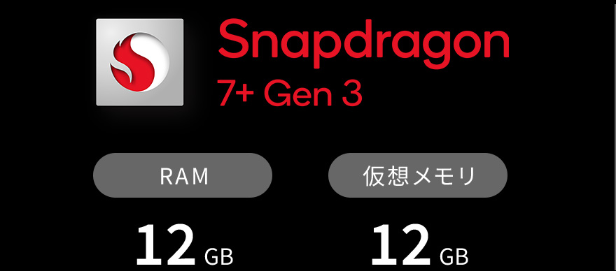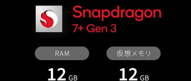 快適動作のCPUとハイパフォーマンスのメモリに加え、最大12GBの仮想RAMにも対応。日常利用や高精細な動画視聴もカクツキなく快適。ストレスフリーで心地よく使えます。