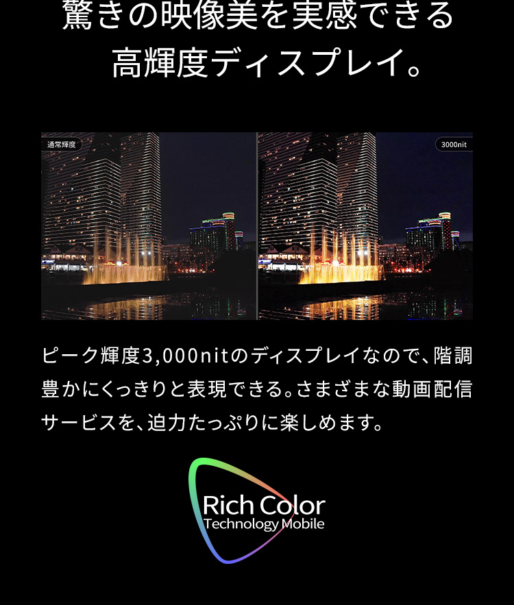 ピーク輝度3,000nitのディスプレイなので、階調豊かにくっきり