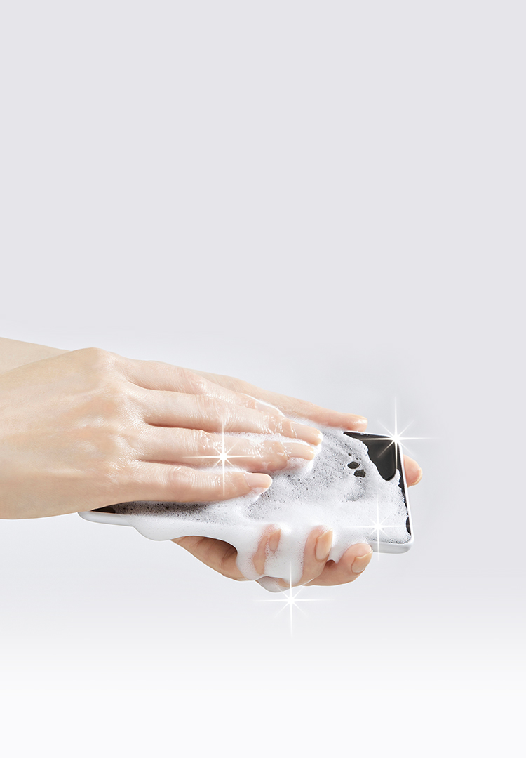 まる洗いする場合、電源を切ってから行ってください。国内メーカー製の家庭用泡タイプのハンドソープあるいは国内メーカー製の家庭用液体タイプの台所用洗剤を使って洗えます(FCNT株式会社試験方法による)。無故障を保証するものではありません。ついた泡は水道水でしっかりすすいでください。濡れた状態では、充電しないでください。洗い方の詳細については「