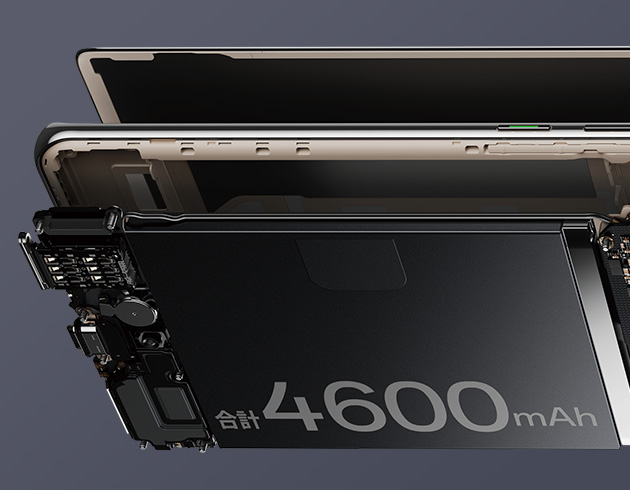 同梱の充電器利用、画面消灯した状態で電池残量2%の状態から100%になるまでの最短充電時間。使用環境などにより変動。