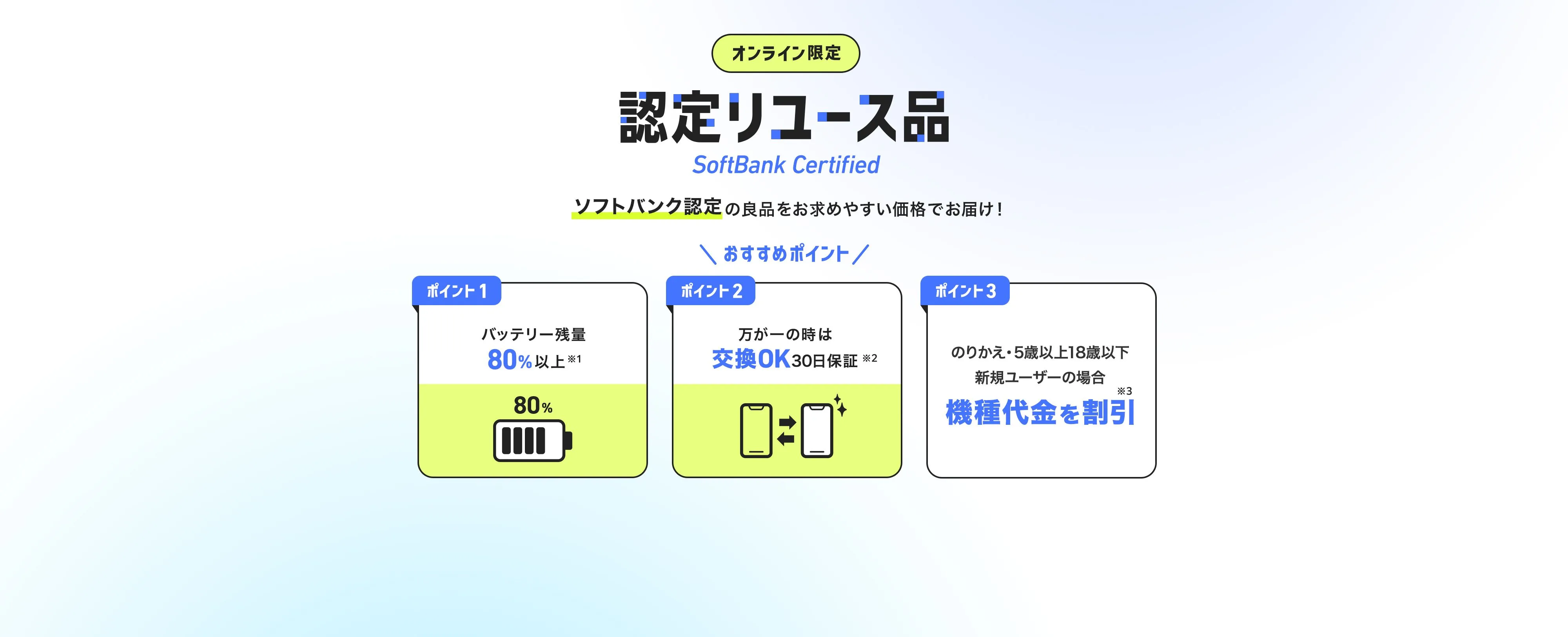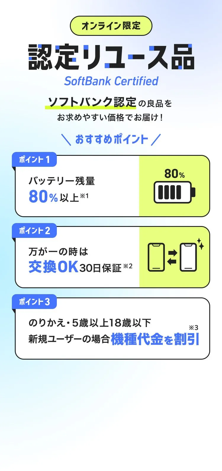 ソフトバンクが厳選した認定整備済みの中古スマートフォンです。