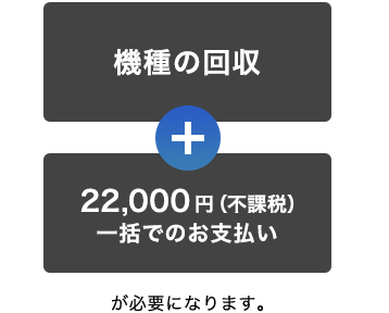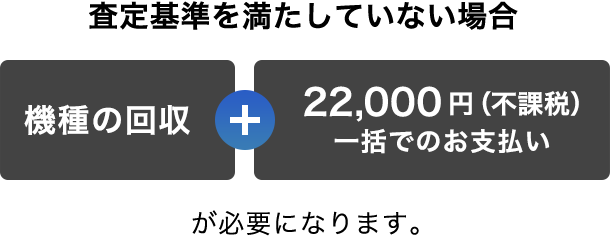 - 回収する機種が破損などで査定条件を満たさない場合、機種の回収に加えて22,000円(不課税)のお⽀払いが必要です。