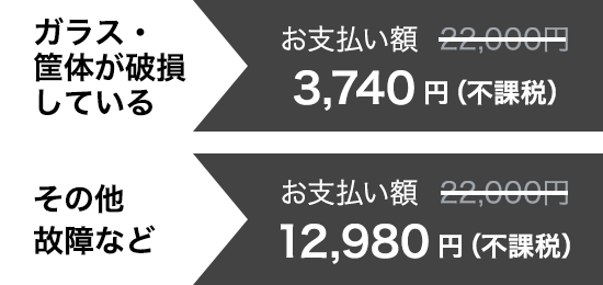減額対象 ・・・ 破損時価格が適用(減額)されます
