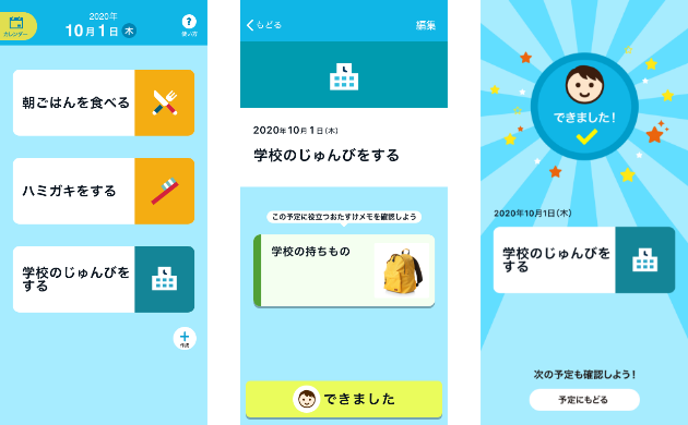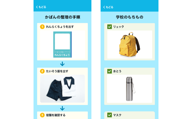 このアプリケーションは、「やること」や「やり方」を目で見えるようにすることで、困りごとを抱えるお子さまがひとりで行動し、本来の力を発揮できるようにアシストします。