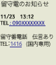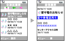 - 携帯電話に着信履歴が残る状態で留守番電話に転送され、メッセージが残されなかった場合、着信お知らせは配信されません。発信者番号が非通知の着信で携帯電話に着信履歴が残らない状態(通話中、電源OFF時、圏外時など)で留守番電話に転送され、メッセージが残されなかった場合、着信お知らせは配信されません。