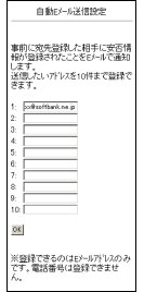 - 知人やご家族のEメールアドレスを設定すると、災害用伝言板にメッセージが登録された際、自動でEメールを送信します。
