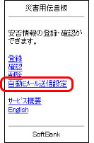 「災害用伝言板」を選択し「自動Eメール送信設定」を押下