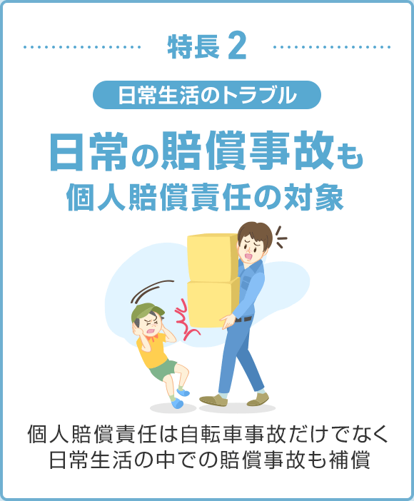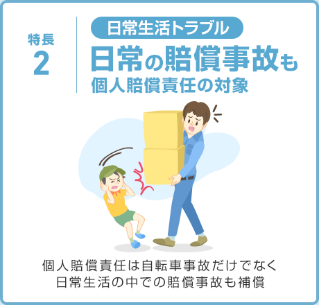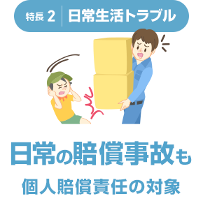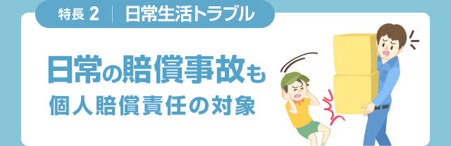 - 「本人型」の個人賠償責任には、「本人のみ補償特約」をセットしています。