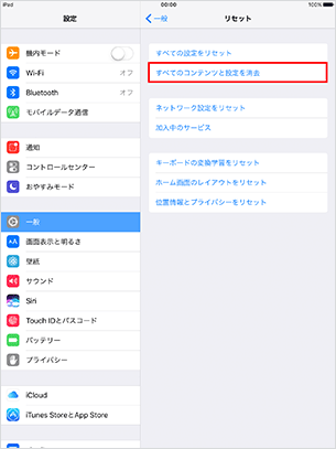 - eSIMが内蔵されている iPad では、すべてのコンテンツと設定を消去する際、eSIMのデータも消去されます。
