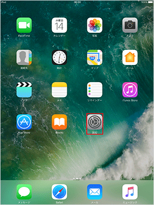 iPad を電源OFF/ONし、左上のネットワーク表示が「 iPad 」になっていることを確認し、「設定」を押す