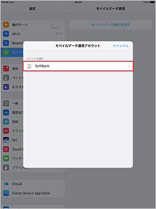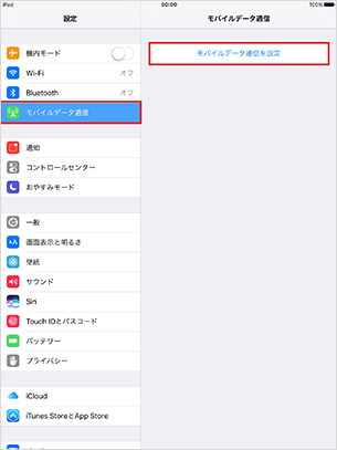 「モバイルデータ通信」→「モバイルデータ通信を設定」を押す