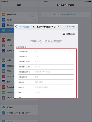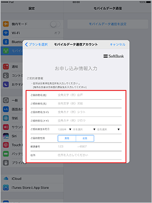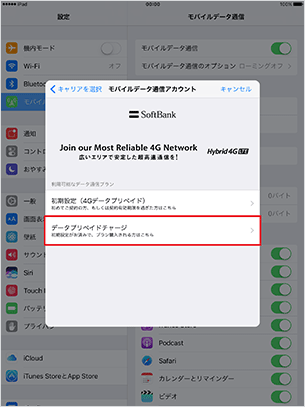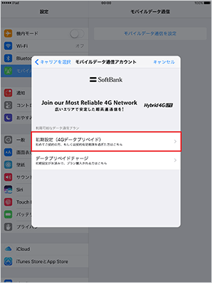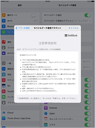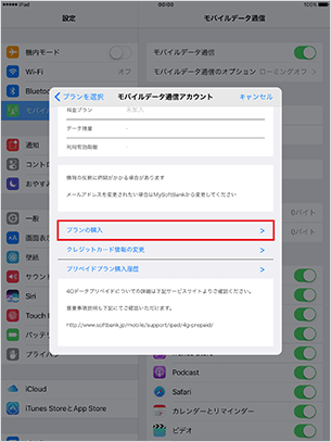 「モバイルデータ通信」を押し、「データ通信プラン選択」で「新規プランを追加」を押す