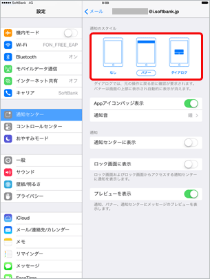 通知のスタイルの「バナー」「ダイアログ」のどちらかを選択し、完了です。